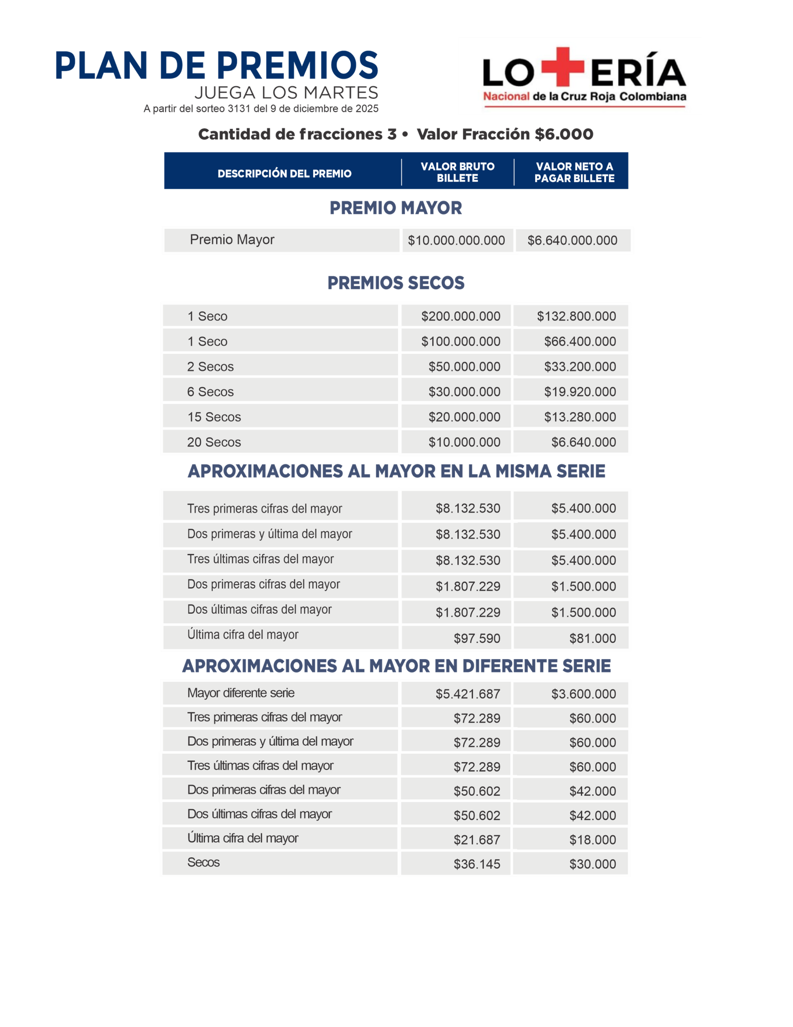 Plan de Premios Lotería Cruz Roja